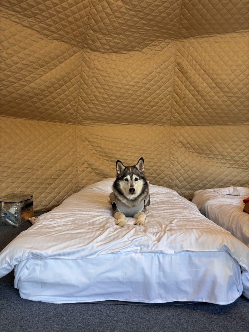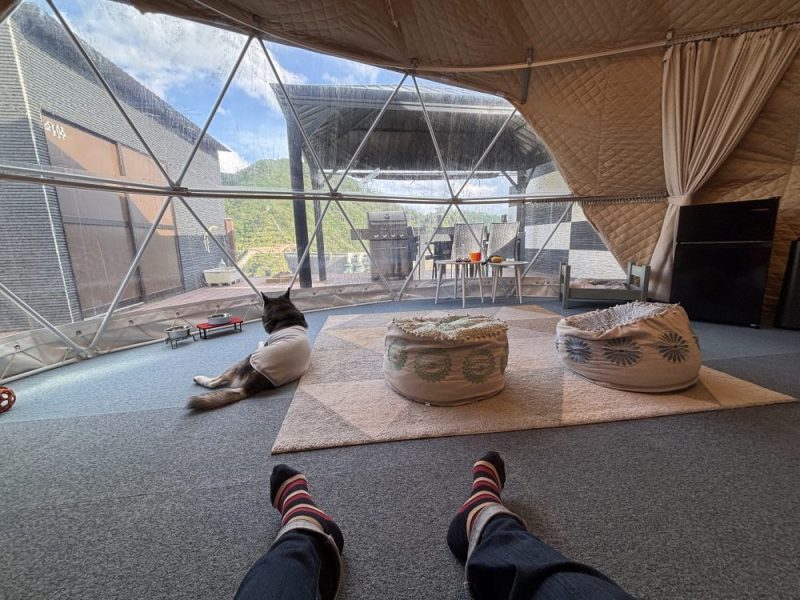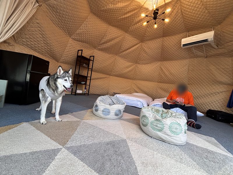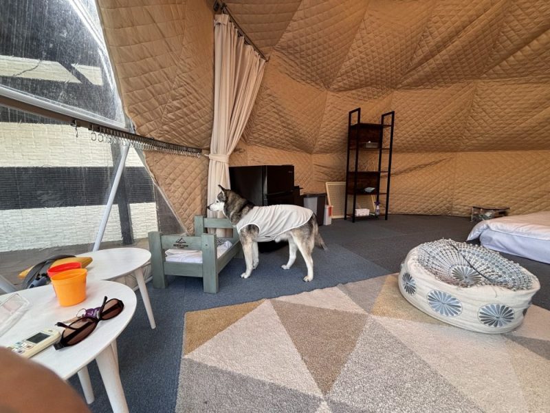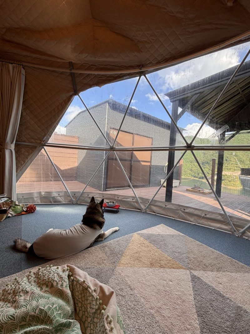 マーブル家と、温井ダムのほとりにある、犬も泊まれるグランピングに行ってきました。