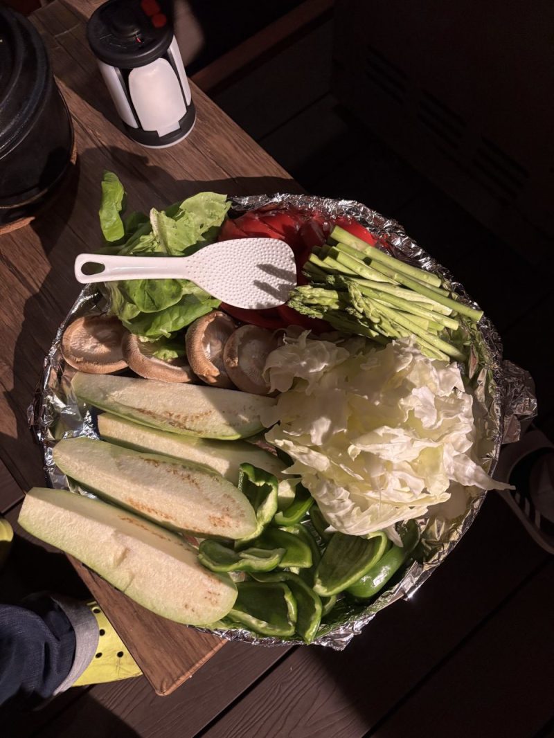 BBQ設備があるので、お肉や、野菜を焼くだけ。