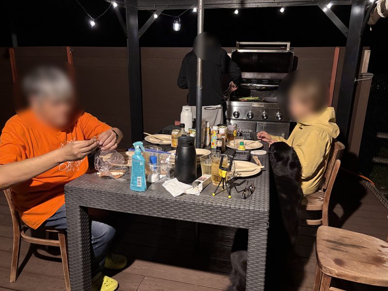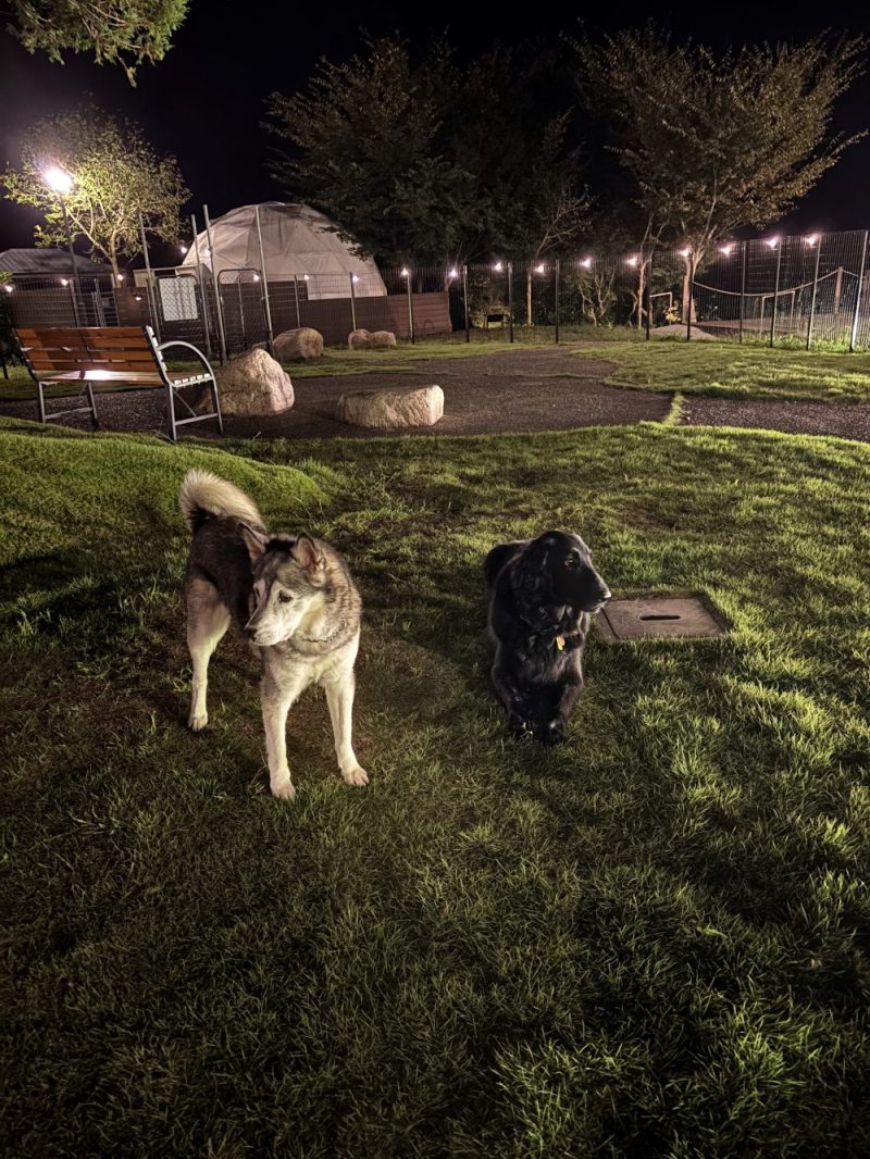 ドッグランは、24時間使えるので、夜も、お二人はマッタリと楽しんでました。