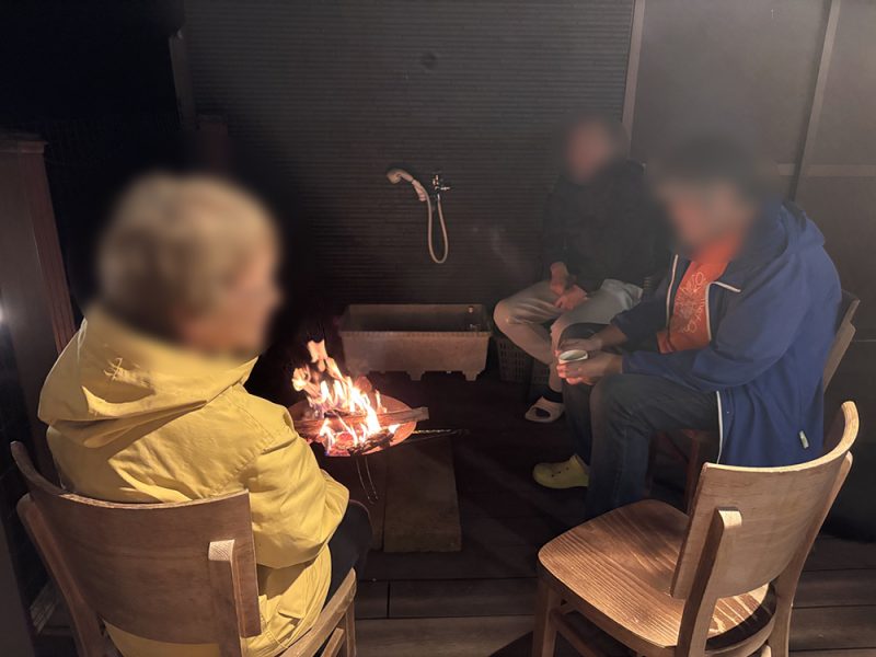 夜は肌寒く、焚き火が🔥温かく、心地よかった。