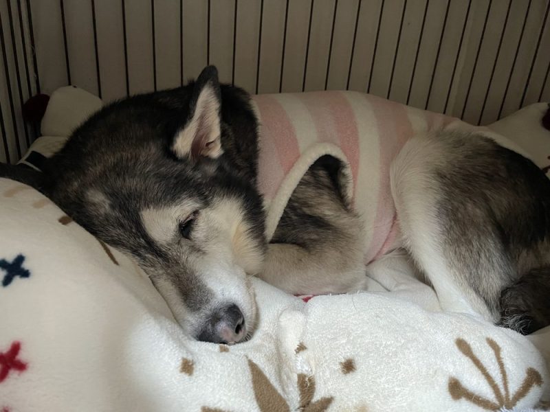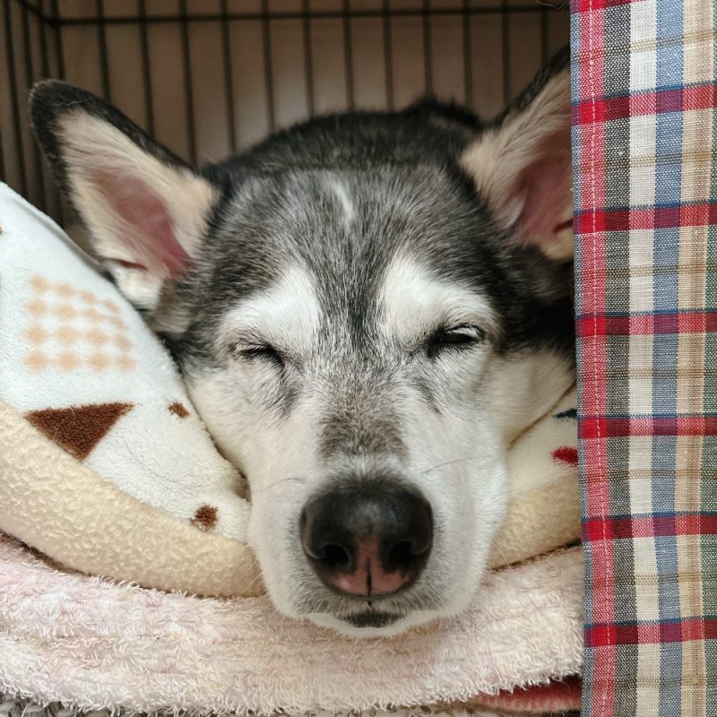 そして、寒がりのsoraにも、クレートにフアフアを敷いてあげました。
