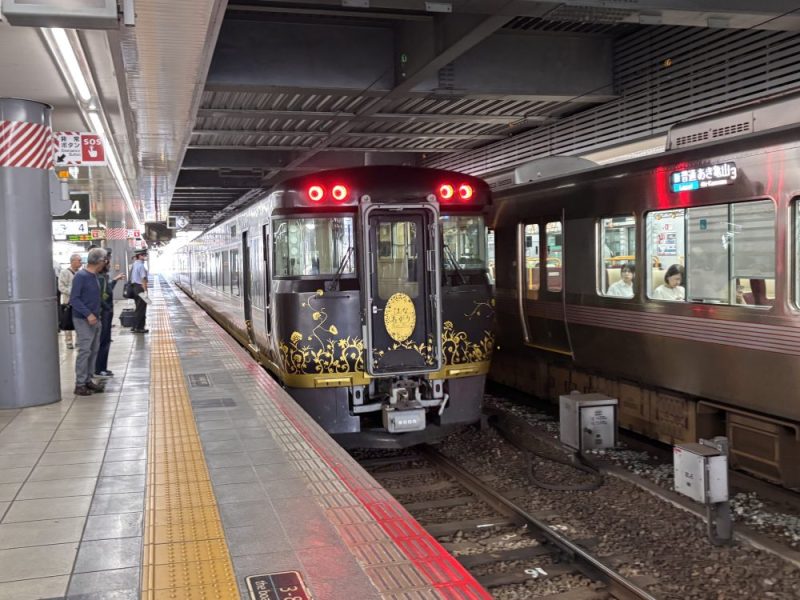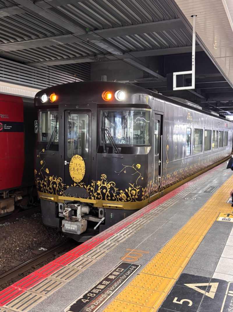 豪華列車 私事 2025.10.072025.10.15 2025/10/07 歯医者の帰り、広島駅にいる時 ホームに、なんか豪華列車が入ってきて、思わず写真撮っちゃいました。 なんかレトロの素敵な電車「はなあかり」でした。 駅員さんに聞いたら、いつもは山口を走ってるらしいのですが 今日はたまたま回送で走ってたみたいです。 なんか、豪華列車って、テンション上がるわ〜〜〜〜。 乗ってみたいけど、見てるだけでも楽し〜〜〜♫ 「撮り鉄」になっちゃいました。 ランキングに参加してます。よろしければ、soraをポチッとお願いします。