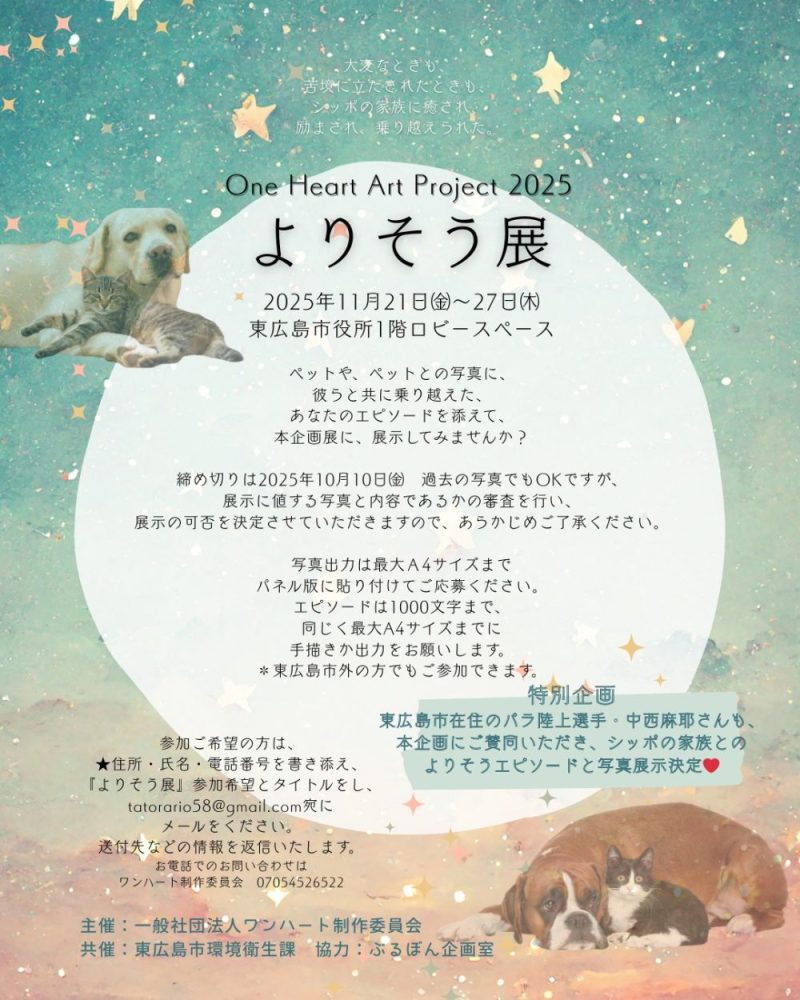 私にご連絡いただいても構いませんし、ワンハートに直接メールくださってもどちらでもOKです。