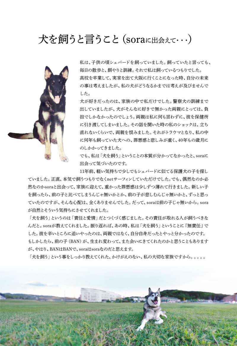 でも、私は「犬を飼う」ということの本質が分かってなかったと、sora出会って気づいたのです。