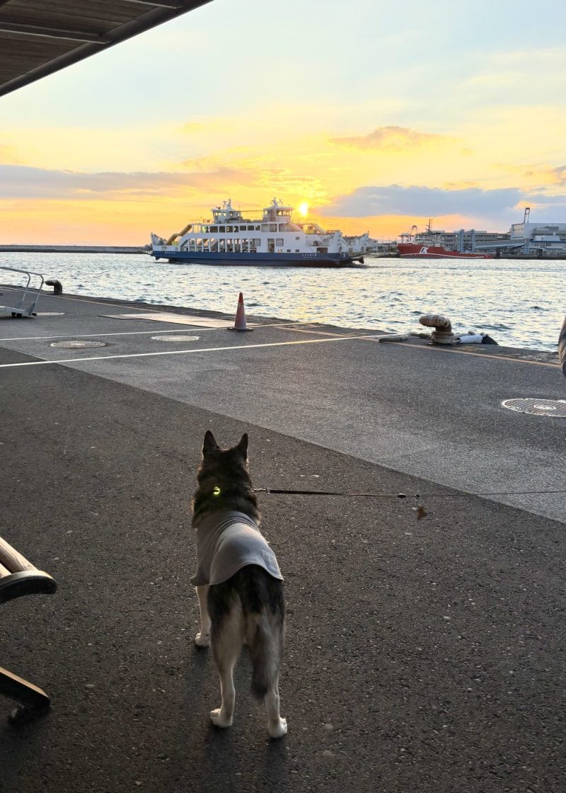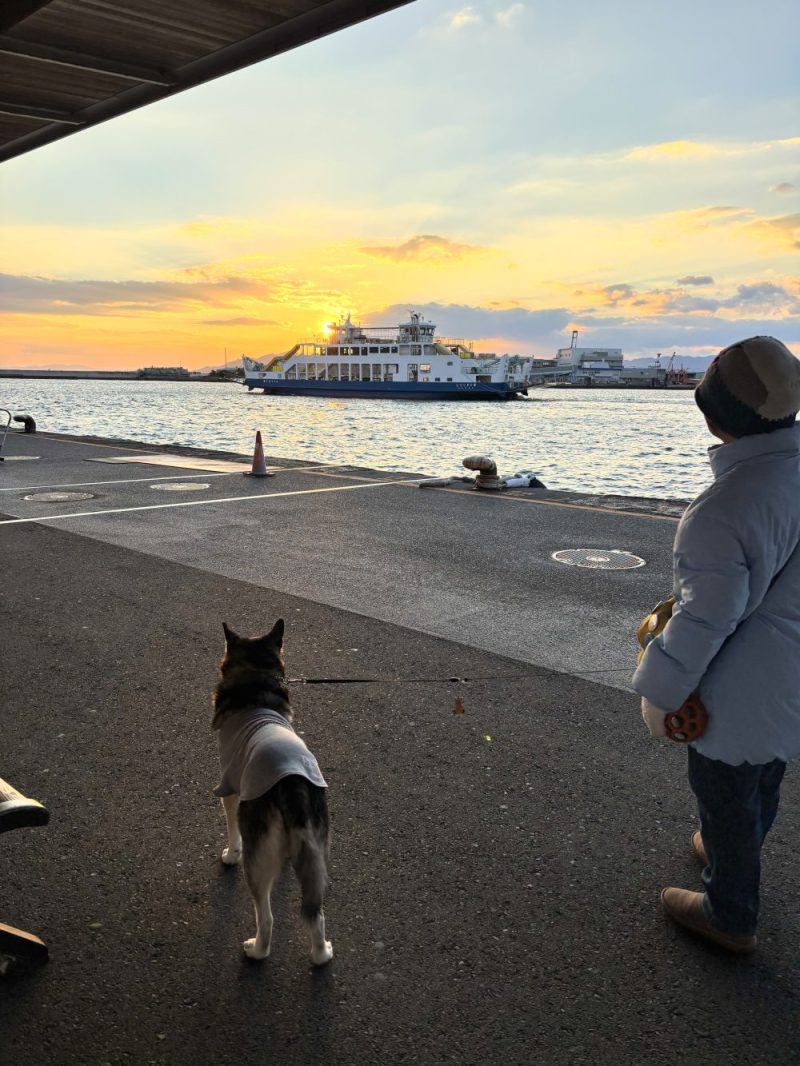 行き交うフェリーを見送り、海を覗き込んで、潮風にあたって、納得したご様子でした。