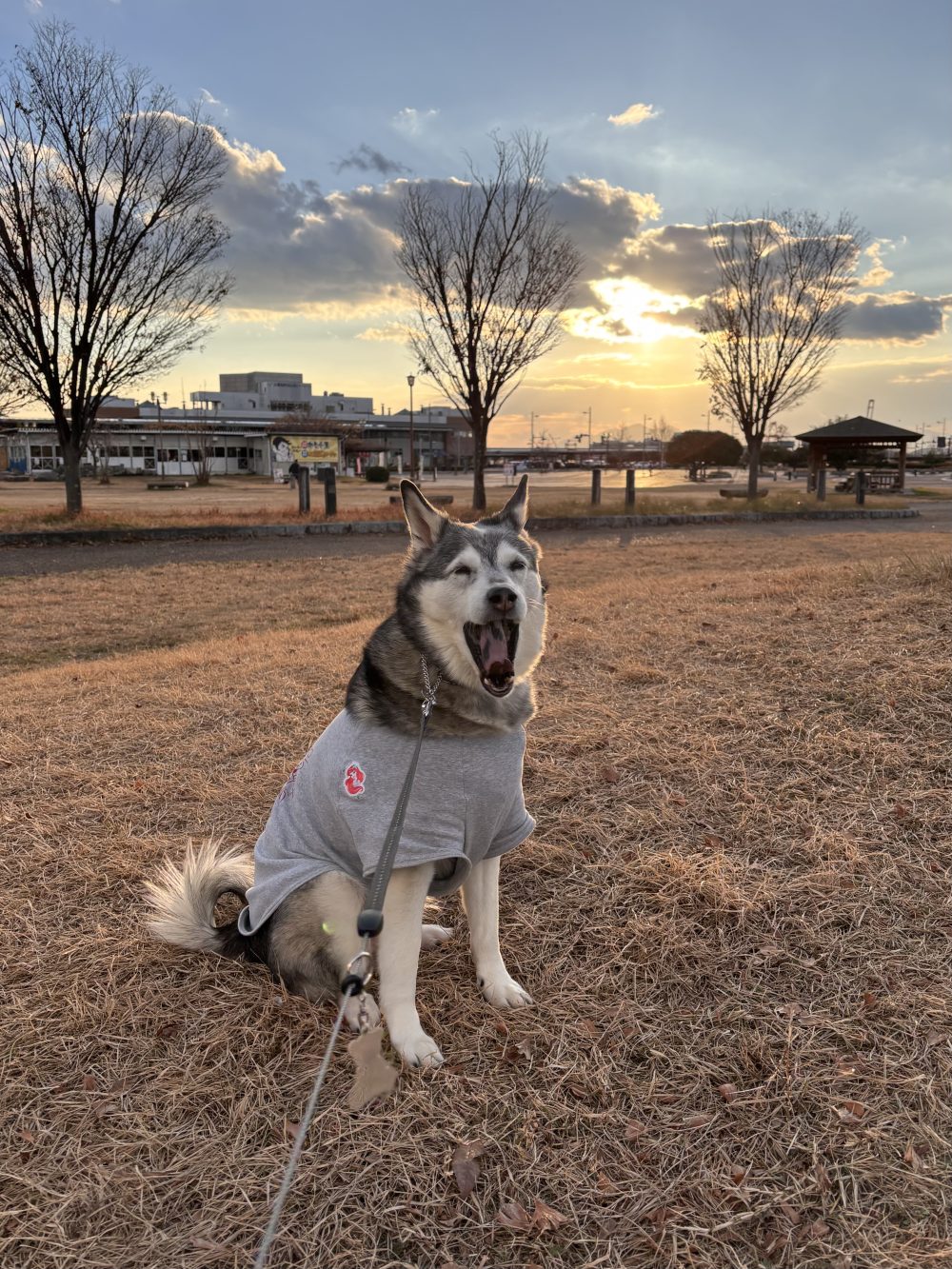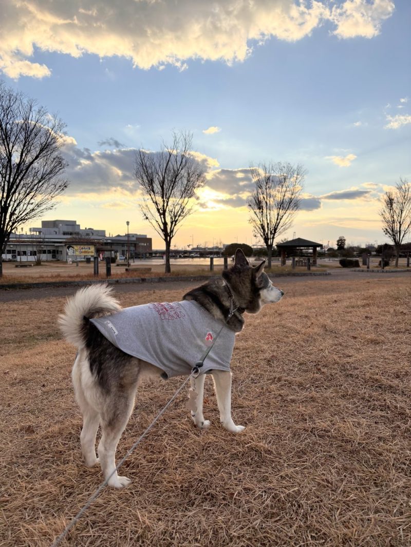 お買い物に連れて行き、公園を散歩。