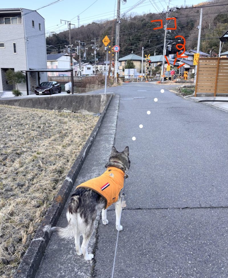 踏切が開いて、父ちゃんが来るまで健気に待つsora。
