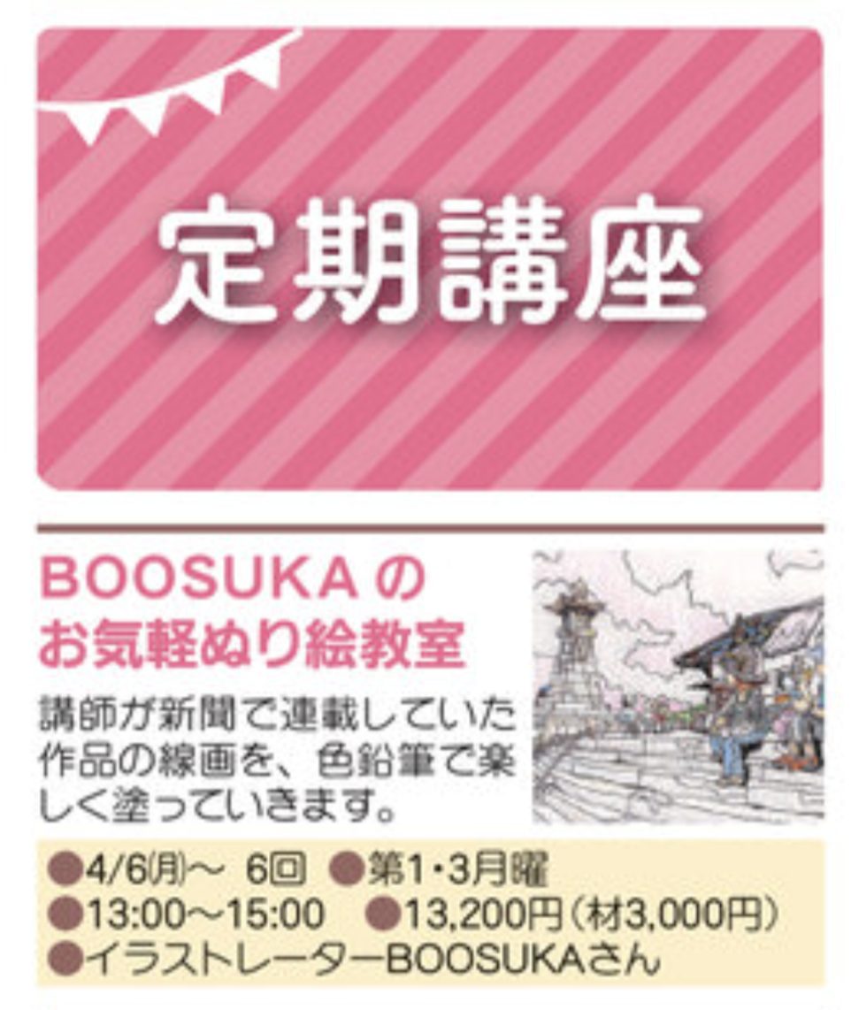 イラストレーターBOOSUKAのお気軽ぬり絵教室(新講座)