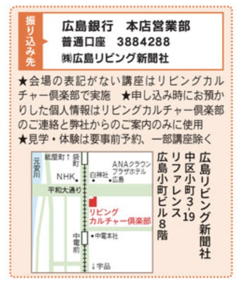 4月から、広島リビングカルチャー倶楽部でも