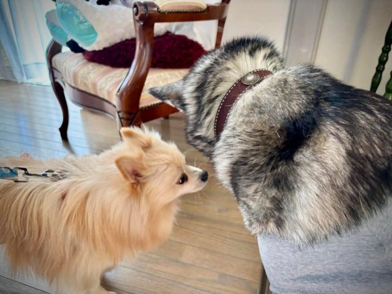 あまりガウガウと怒られて、さすがのsoraも、大きな声で一喝!「ワン!」