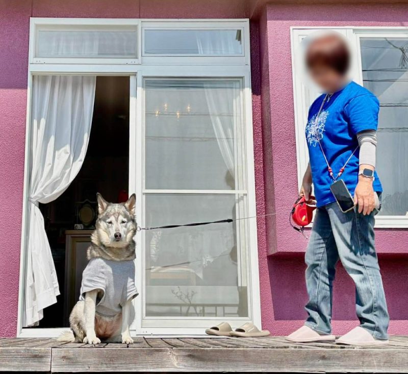 お茶会も終わり、帰る時ベランダに出たんですが、どうも母ちゃんと一緒だと不服そうなsoraだ😅
